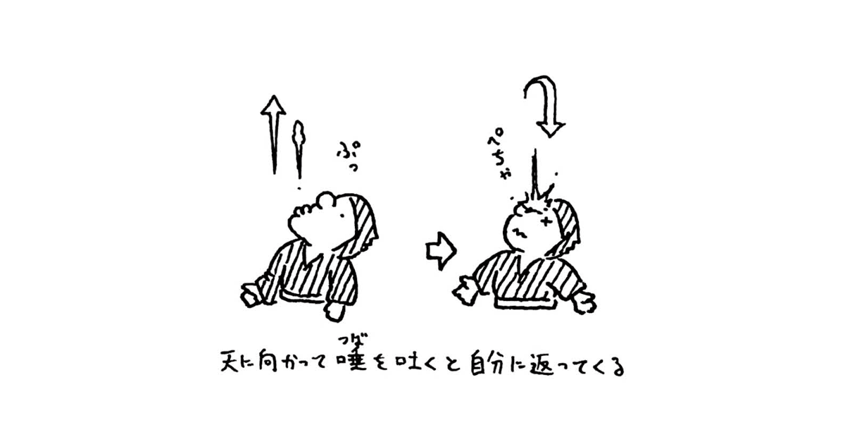 向天吐唾(こうてんとだ)、なんていう言い方もあるらしい。